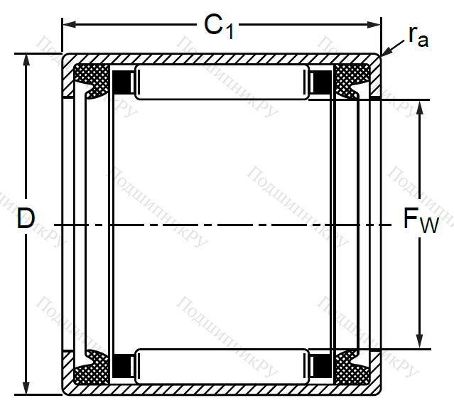 - В сравнении с прочими иглоподшипниками аналогичного диаметра, имеет наименьшую ширину.