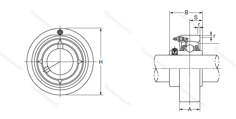 Деталь с круглым корпусом серии С, выплавленным из серого стойкого к износу чугуна, и радиальным шарикоподшипником разновидности UC, который удерживается в гнезде при помощи стопорных винтов и обладает более длинной внутренней обоймой в сравнении с прочими моделями. Снаружи устройство напоминает цилиндр.
